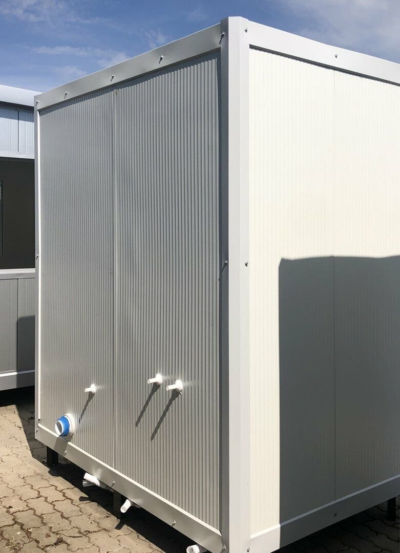 Conteneur bureau 5 × 2,40 m avec sanitaire (urinoir, WC, lavabo-douche). C’est la star de nos conteneurs bureau. Il peut être habitable et utilisé à des fins privées ou professionnelles selon vos besoins. Comme vous pouvez le voir sur la photo, il est équipé d’une fenêtre fixe intégrée. Cela permet de laisser entrer plus de lumière, d’avoir une meilleure vue vers l’extérieur, et de réduire la sensation d’être dans un conteneur. Grâce à sa conception amovible, il peut également être utilisé de manière temporaire.