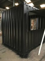 Ancien conteneur de transport de marchandises étanche au vent et étanche, 1 trappe de service à piston et 1 porte pour le personnel de sécurité.