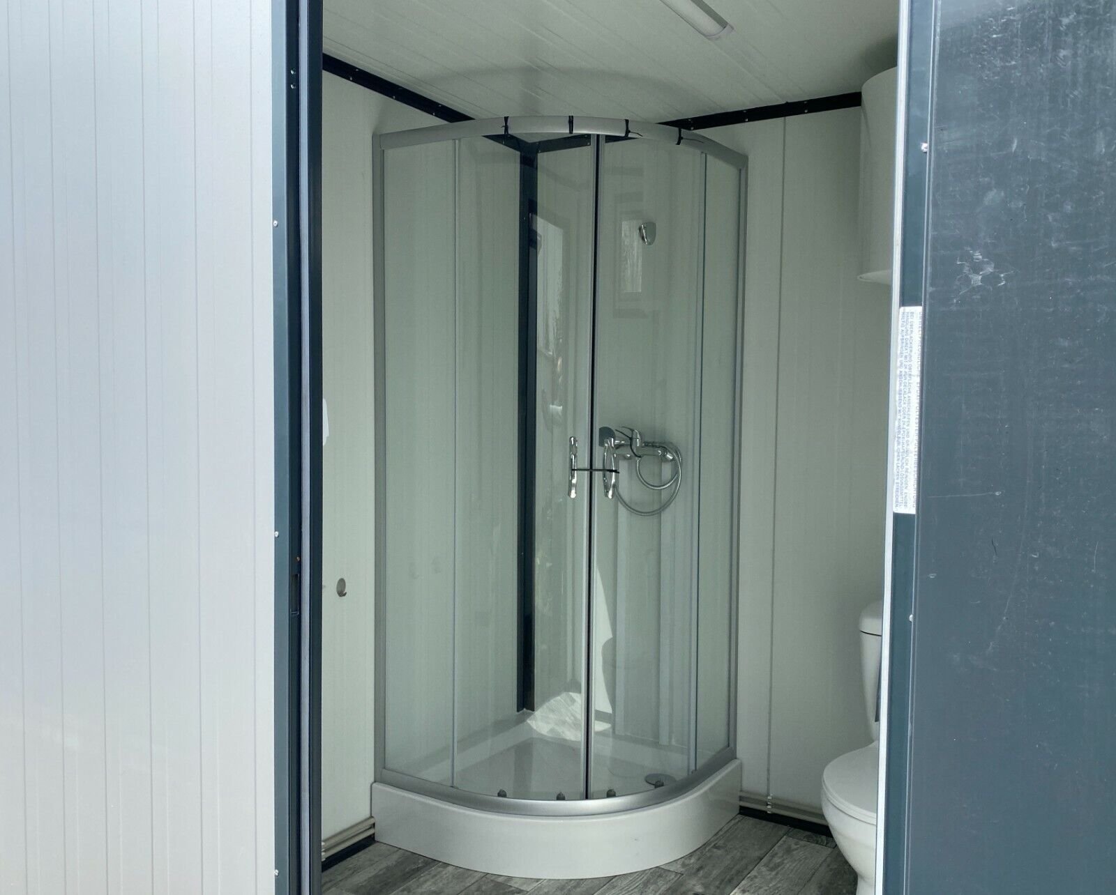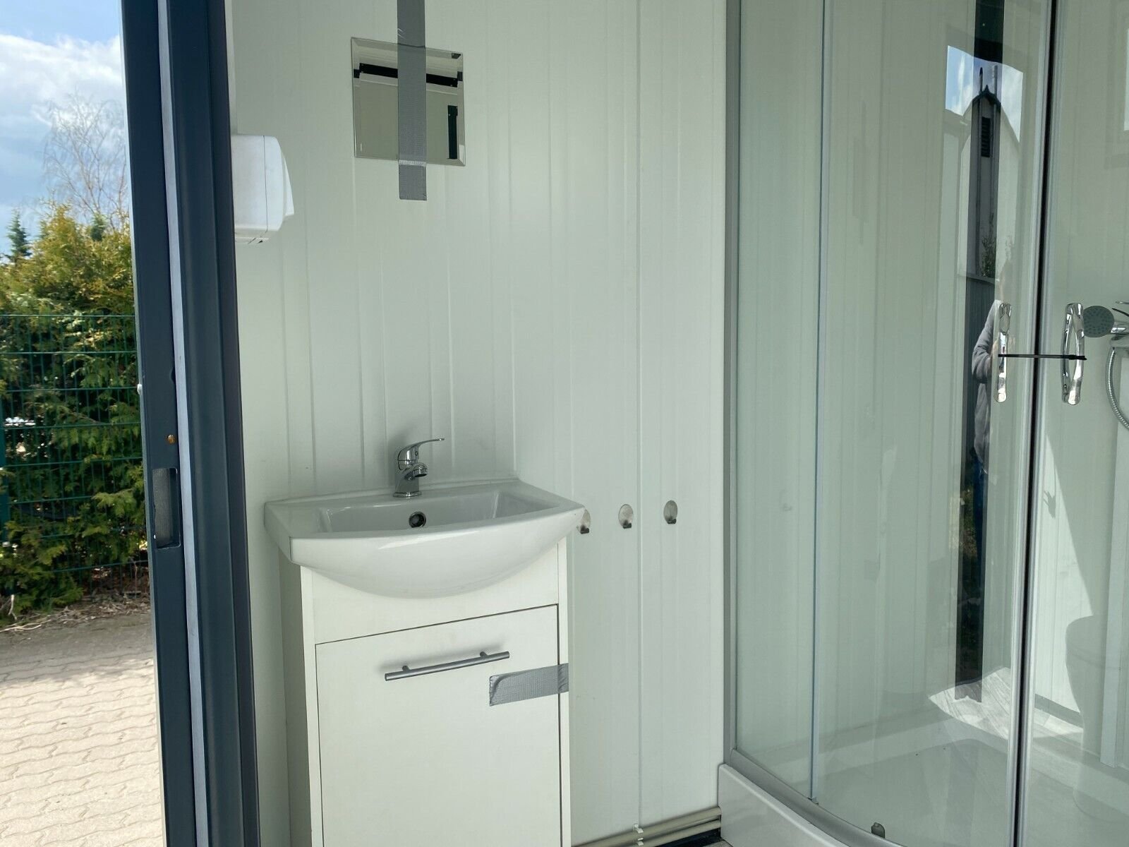 - Cabine de douche : receveur antidérapant, paroi vitrée – PVC, robinet mitigeur