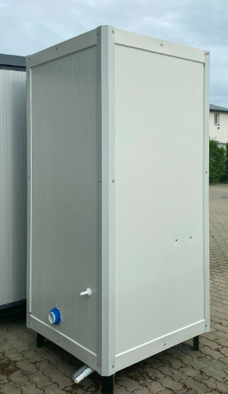 Notre bloc sanitaire S1 est un bloc sanitaire mobile standard équipé de toilettes et d’un lavabo. Il est équipé à la base de quatre pieds de 16 cm de long et mesure 1,20 x 1,15 m. Il suffit de le raccorder à l’électricité, à l’eau et aux eaux usées pour qu’il soit immédiatement prêt à l’emploi.