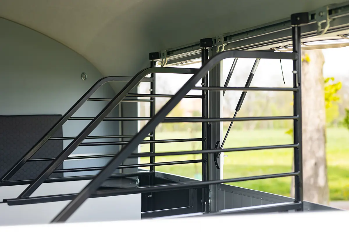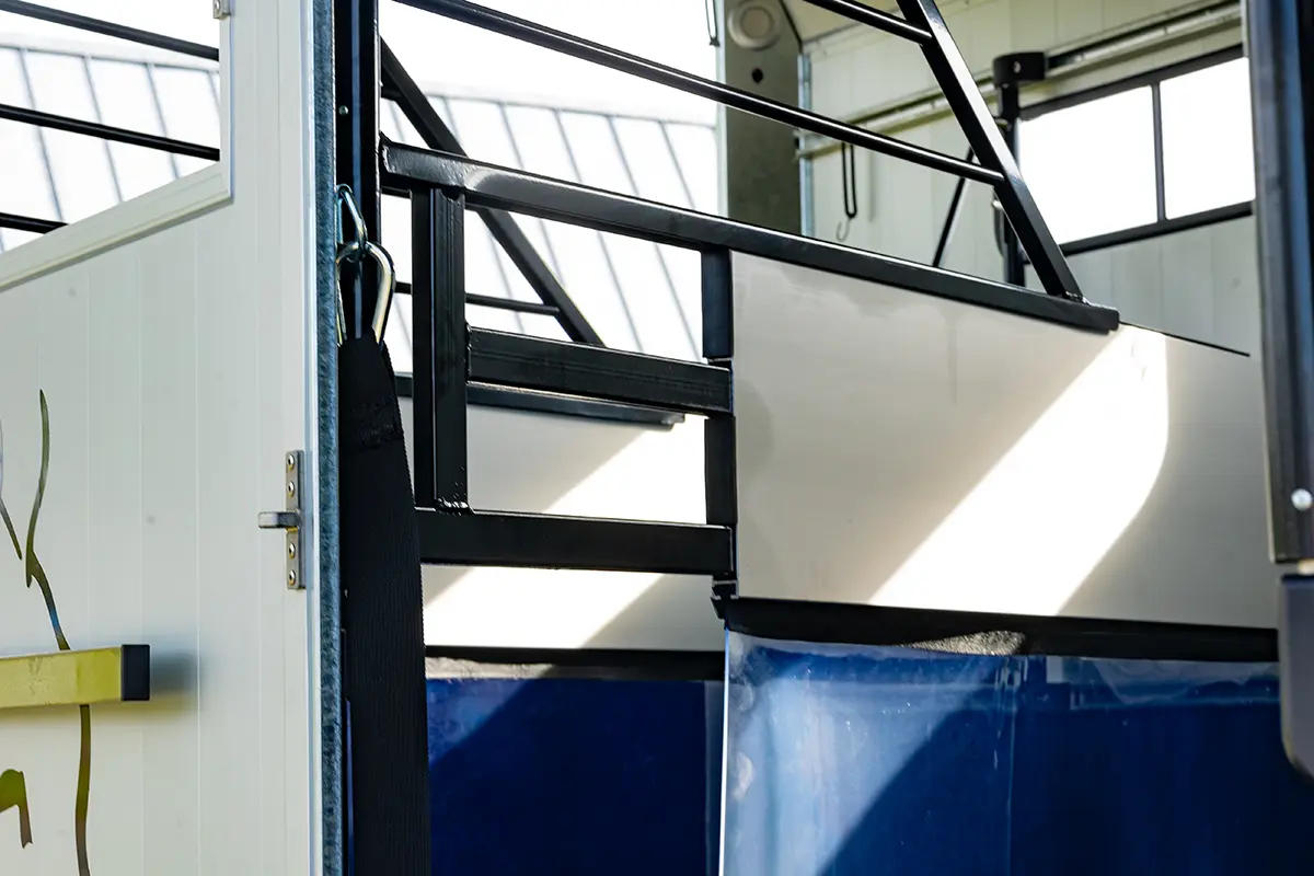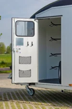 La gamme HB est une gamme traditionnelle offrant un confort et une sécurité optimaux pour votre cheval. Le van HB est doté d’une structure en aluminium composée de six poteaux verticaux à chaque angle, renforcés par des profilés horizontaux sur toute sa longueur. Ce cadre dissimulé offre un large panneau latéral, lui conférant une allure élégante, rappelant davantage l’automobile que l’agriculture. Les vans HB2 et HB506 disposent de 511 chambres. Les deux modèles sont conçus pour deux chevaux. Le HB506 peut accueillir deux chevaux de taille normale, tandis que le HB511, plus long et plus large, peut accueillir deux chevaux de grande taille. Les deux modèles sont équipés de fenêtres latérales et d’une grande fenêtre frontale, offrant une luminosité accrue. Un système de compartiments, ainsi que des barres de poitrail et de recul, sont installés de série.