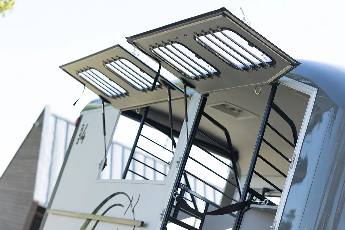 Transportez 4 chevaux en toute sécurité et confort avec chargement diagonal. Pour le confort du cavalier, une esthétique irréprochable s’impose grâce à la conception de coque polyester plus aérodynamique, sans pour autant sacrifier l’imposant espace sellerie. De nombreuses évolutions sur les attaches chevaux, les ouvrants, la modularité et plus encore, pour des déplacements sans contraintes…