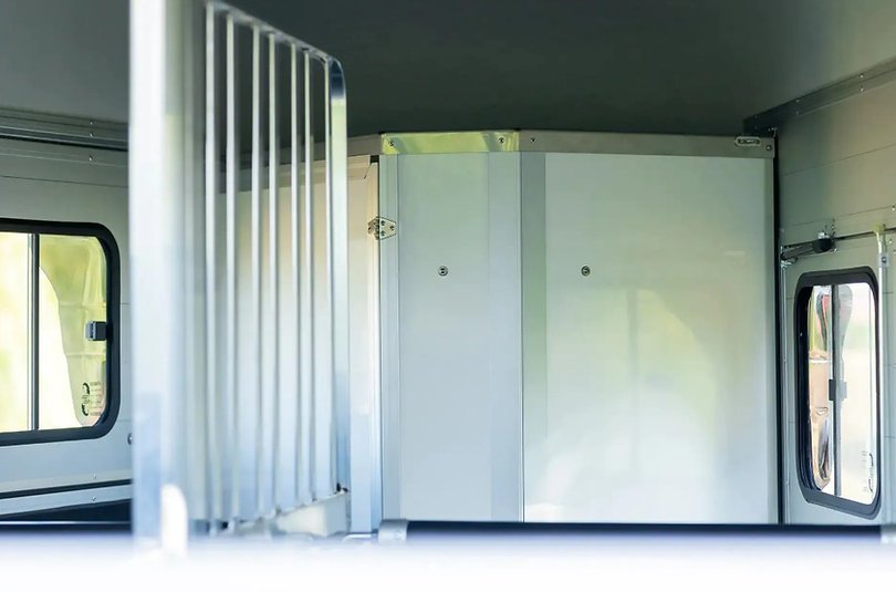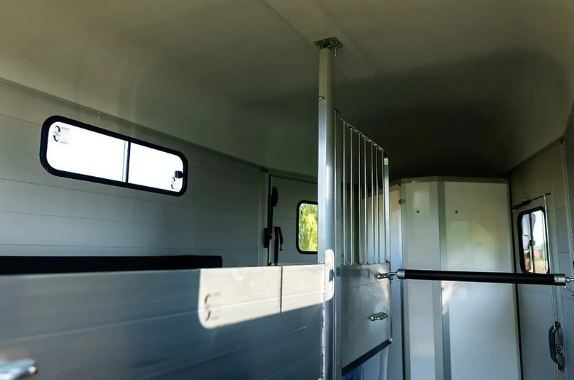La gamme HB est une gamme traditionnelle offrant un confort et une sécurité optimaux pour votre cheval. Le van HB est doté d’une structure en aluminium composée de six poteaux verticaux à chaque angle, renforcés par des profilés horizontaux sur toute sa longueur. Ce cadre dissimulé offre un large panneau latéral, lui conférant une allure élégante, rappelant davantage l’automobile que l’agriculture. Les vans HB2 et HB506 disposent de 511 chambres. Les deux modèles sont conçus pour deux chevaux. Le HB506 peut accueillir deux chevaux de taille normale, tandis que le HB511, plus long et plus large, peut accueillir deux chevaux de grande taille. Les deux modèles sont équipés de fenêtres latérales et d’une grande fenêtre frontale, offrant une luminosité accrue. Un système de compartiments, ainsi que des barres de poitrail et de recul, sont installés de série.