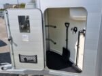 Le HBX 506, 2 places est idéal pour transporter deux chevaux. Il est équipé de série de deux vitres latérales, d’une grande fenêtre avant, de longerons latéraux, d’un portail et de barres de recul. Pour les propriétaires de fourgons recherchant une polyvalence accrue, le pont de portail standard est idéal. Fonctionnant comme un pont pour le chargement des chevaux, il peut également s’ouvrir comme une porte latérale, permettant ainsi à un chariot élévateur de chargeur d’objets lourds dans le fourgon.