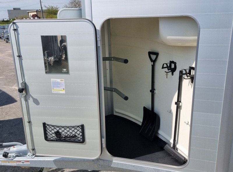 La gamme HB est une gamme traditionnelle offrant un confort et une sécurité optimaux pour votre cheval. Le van HB est doté d’une structure en aluminium composée de six poteaux verticaux à chaque angle, renforcés par des profilés horizontaux sur toute sa longueur. Ce cadre dissimulé offre un large panneau latéral, lui conférant une allure élégante, rappelant davantage l’automobile que l’agriculture. Les vans HB2 et HB506 disposent de 511 chambres. Les deux modèles sont conçus pour deux chevaux. Le HB506 peut accueillir deux chevaux de taille normale, tandis que le HB511, plus long et plus large, peut accueillir deux chevaux de grande taille. Les deux modèles sont équipés de fenêtres latérales et d’une grande fenêtre frontale, offrant une luminosité accrue. Un système de compartiments, ainsi que des barres de poitrail et de recul, sont installés de série.